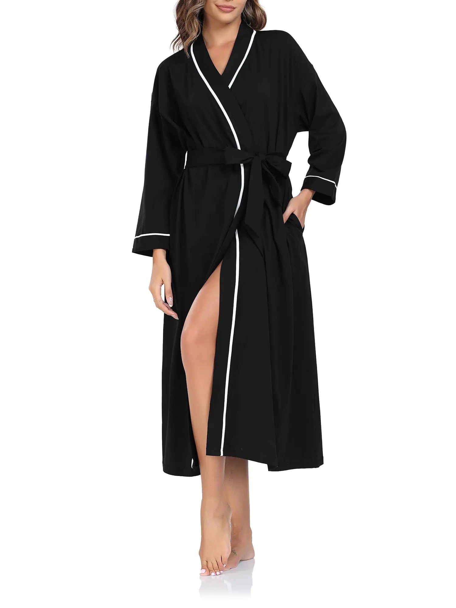 Made from 100% cotton, this robe is lightweight, breathable, and gentle on the skin—perfect for lounging or drying off after a shower.