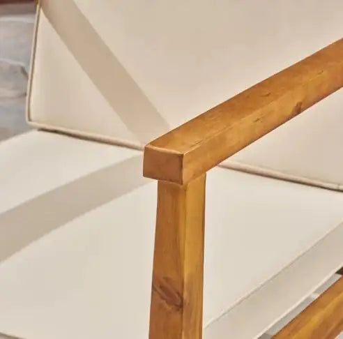 Outdoor 4-Seater Acacia Wood Chat Set With Coffee Table With Cushions, Teak And Beige